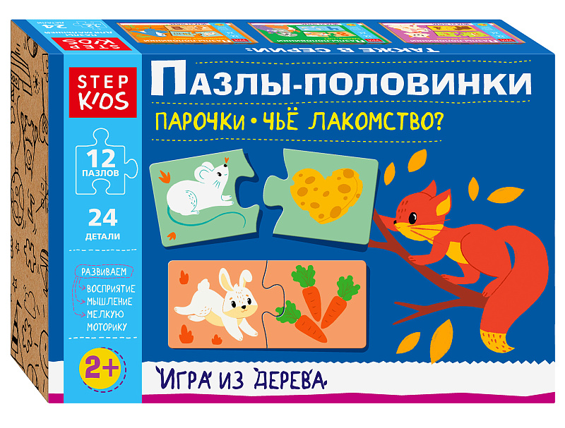 Игра из дерева «Пазлы-половинки: Парочки. Чье лакомство?» (Step Kids)