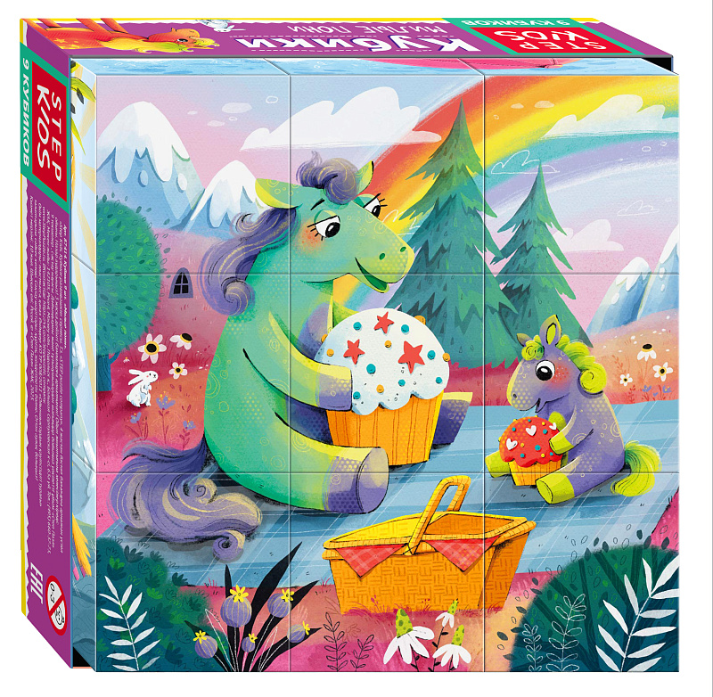 9 кубиков складываются в шесть милых изображений пони — ярких, дружелюбных персонажей, которые дети легко запоминают. Такой набор развивает логическое мышление и помогает ребёнку учиться работать по шагам.