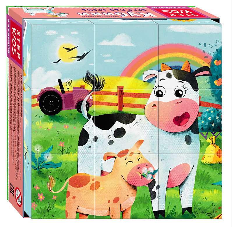 Кубики 9 шт. "Весёлая ферма" (StepKids)