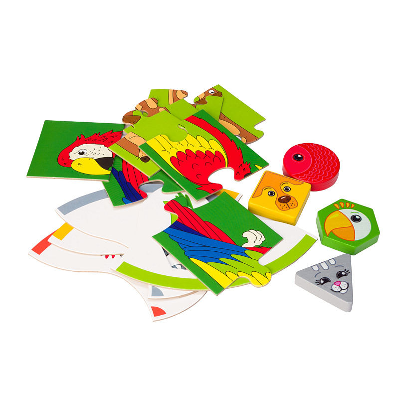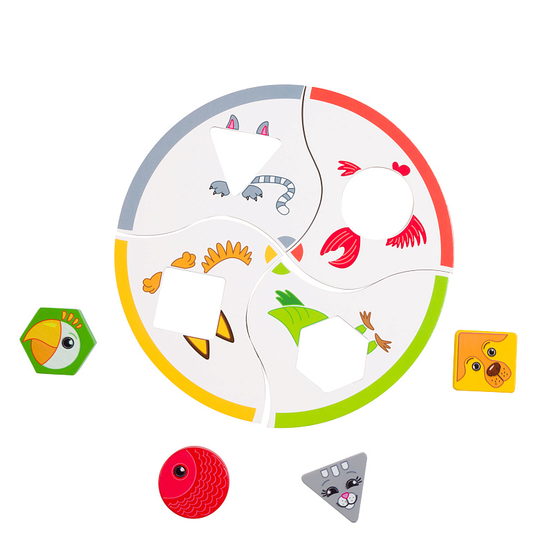 Соберите сортер. Выложите фигурки так, чтобы части рисунка совпали.