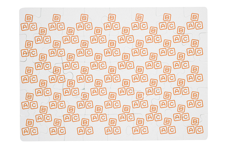 Пазлы из наборов 4 в 1 можно собирать без опоры на картинку, с обратной стороны. Метод «слепой сборки» возможен благодаря уникальному штампу. Каждая деталь имеет свою форму и встает только на свое место.