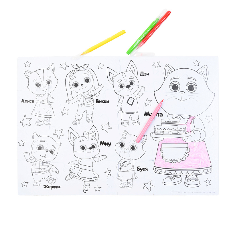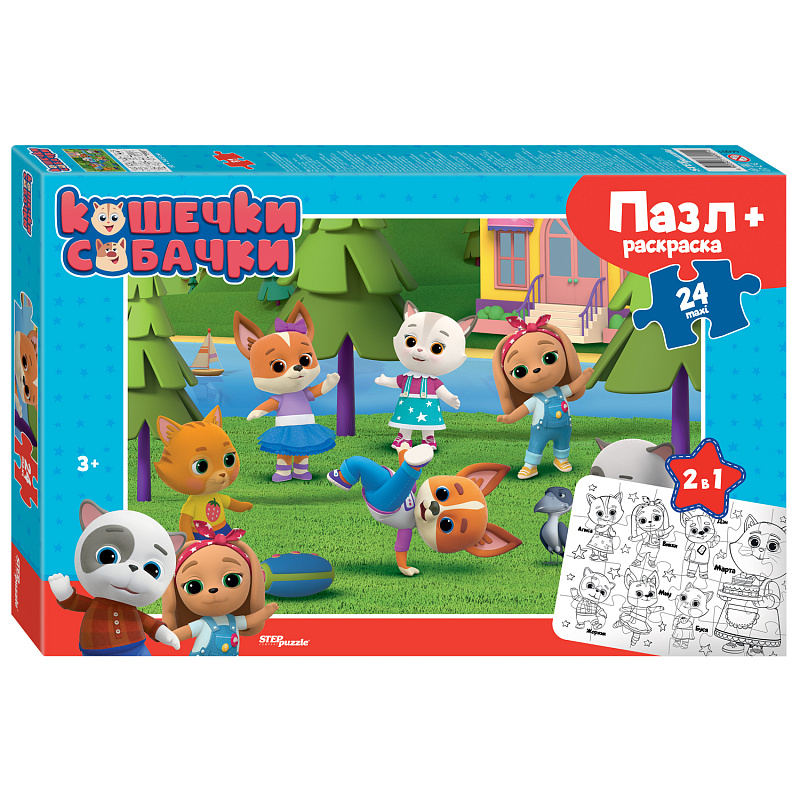 Пазл «Кошечки и собачки» с любимыми героями 0+Медиа. С раскраской.