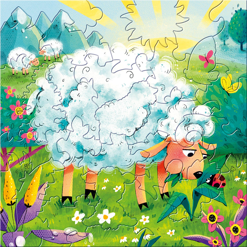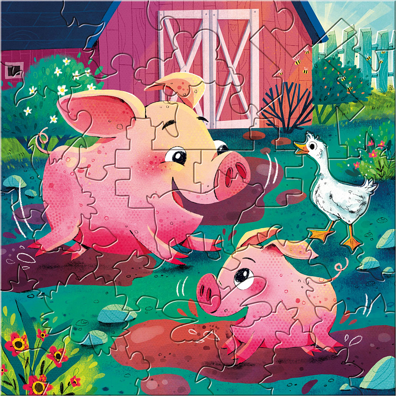 Набор из трёх фигурных пазлов «Весёлая ферма» приглашает ребёнка в мир домашних животных и спокойного деревенского ритма.