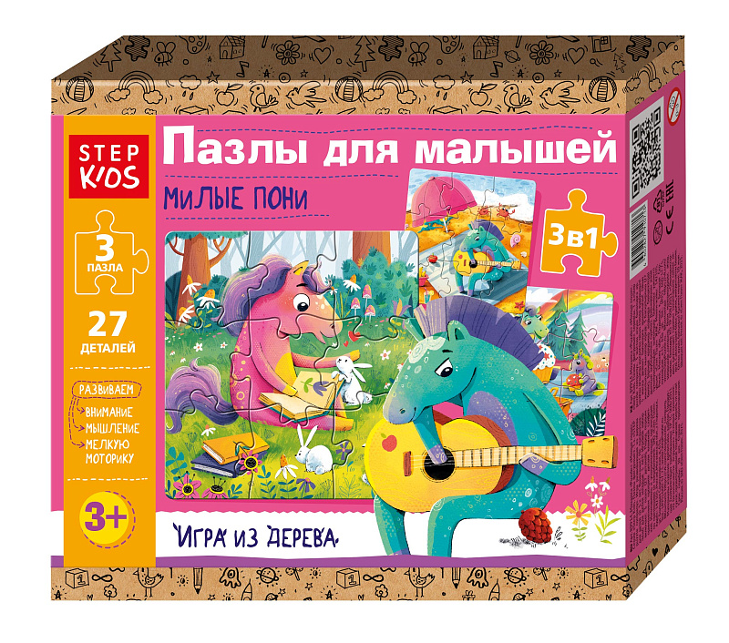 Пазлы деревянные: набор из трёх пазлов 9 эл. "Милые пони" (StepKids)