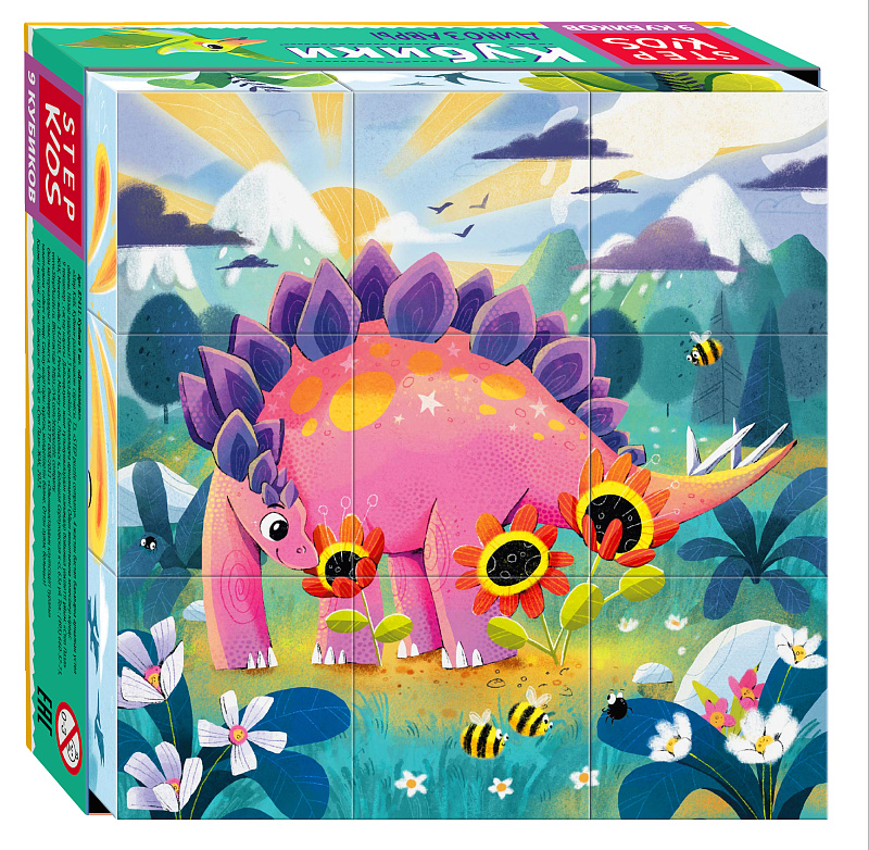 Кубики 9 шт. "Динозавры" (StepKids)
