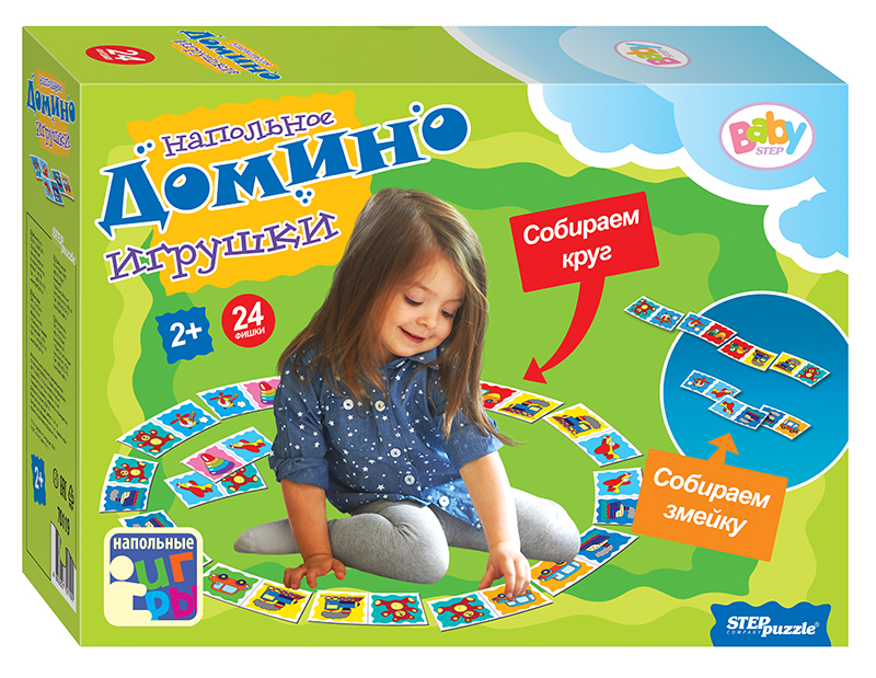 Напольное домино "Игрушки" способствует развитию у детей внимания, зрительного восприятия, комбинаторных и логических способностей, учит определять одинаковые картинки и соединять их в цепочки.