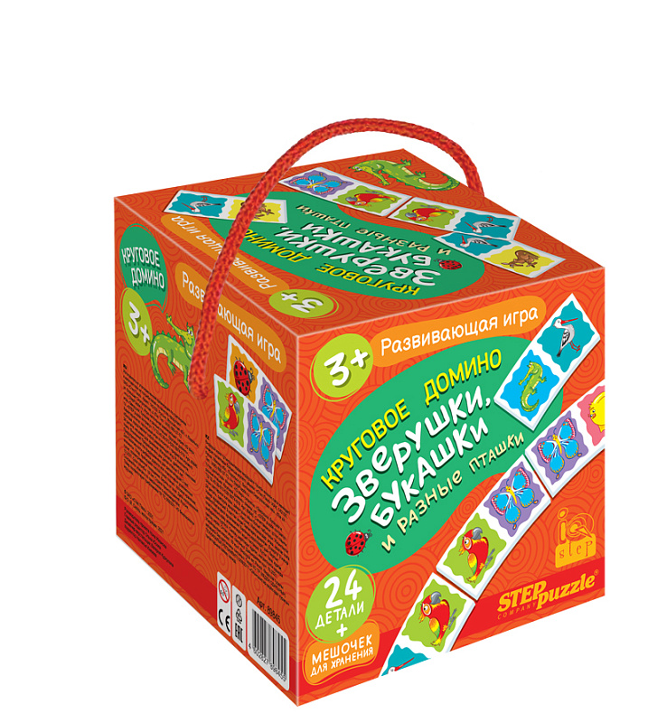 «Зверушки, букашки и разные пташки. Круговое домино» — деревянное домино для детей от 3-х лет. Найдите одинаковые изображения и соедините их. В ходе игры детали выкладываются виде большого круга.