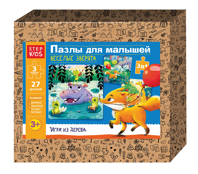 Пазлы деревянные: набор из трёх пазлов 9 эл. "Весёлые зверята" (StepKids)