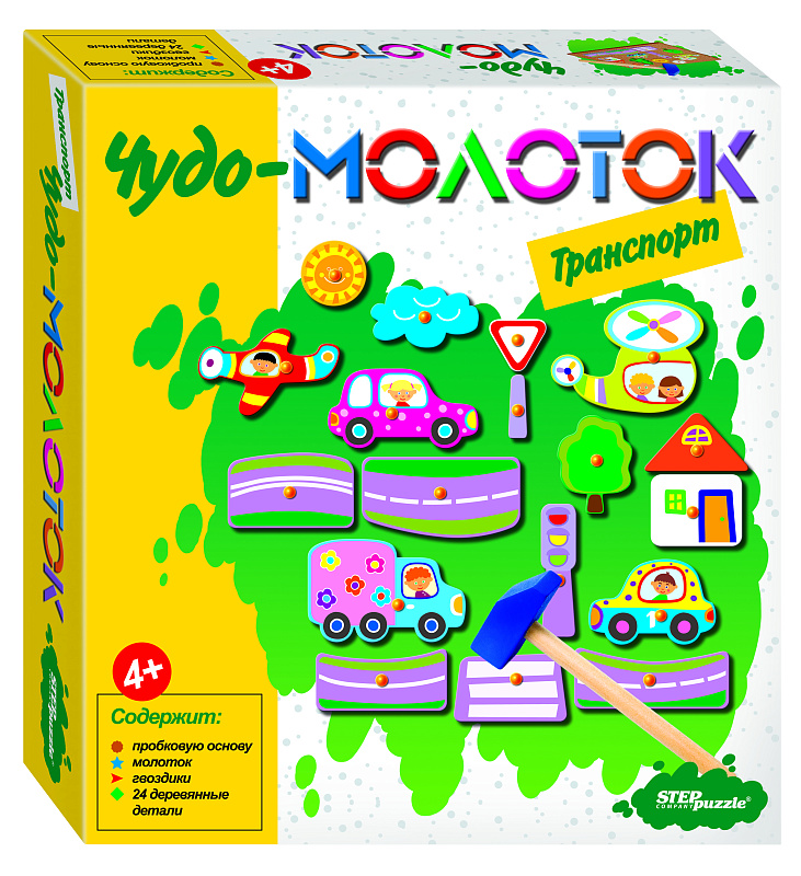 Развивающая игра «Транспорт. Чудо-молоток» - настольная игра для создания картин из дерева.