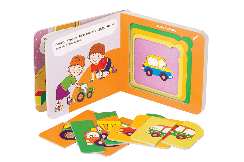 Пазлы в книжке ориентированы на активное развитие мелкой моторики, сенсорики, речи, памяти, внимания, логического и образного мышления.