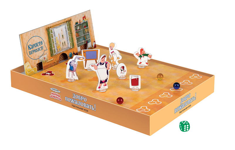 Победителем становится тот, кто первым остановится на поле с изображением Карлсона.