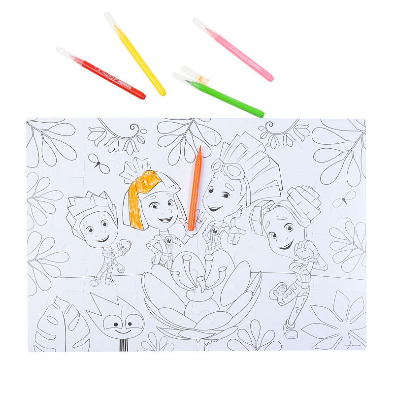 Пазл «Фиксики» с героями одноименного мультфильма от АО "СТС". С раскраской.