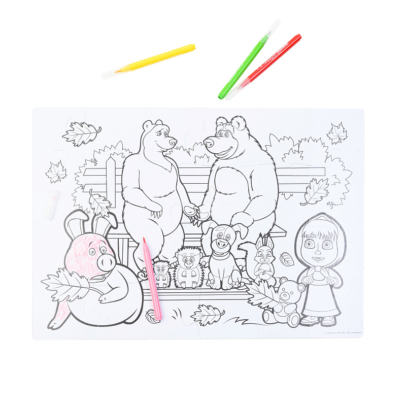 Пазл «Маша и Медведь» с героями одноименного мультфильма. С раскраской.